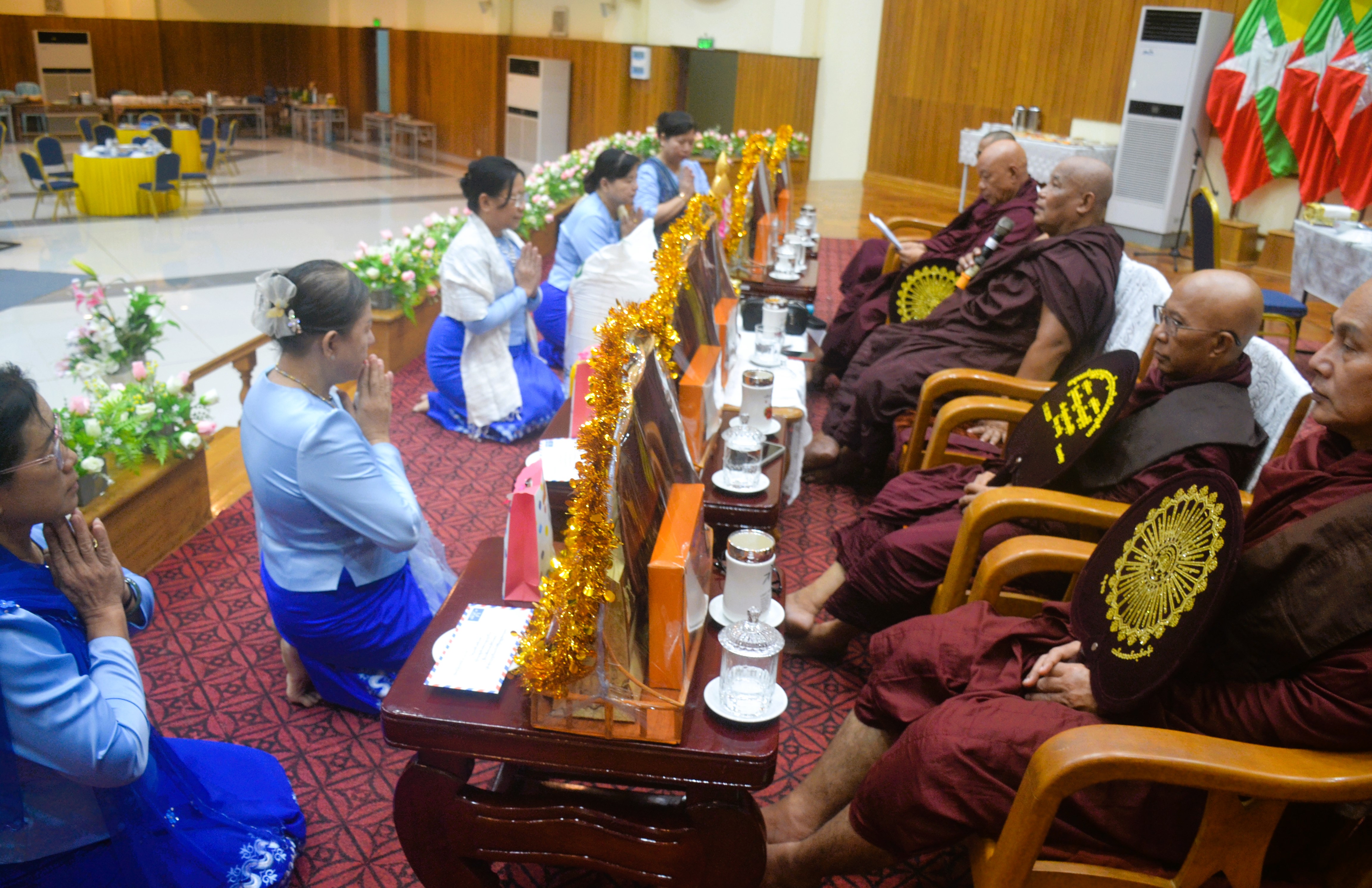 ဦးစွာ ကထိန်သင်္ကန်းဆက်ကပ်လှူဒါန်းပွဲအခမ်းအနားကို နမောတဿ (၃)ကြိမ် ရွတ်ဆိုဘုရားကန်တော့ ဖွင့်လှစ်ပြီး ပါမောက္ခချုပ် နှင့် တက်ရောက်လာကြသည့် ဆရာ၊ ဆရာမများ၊ ဝန်ထမ်းမိသားစုများသည် သန်လျင်မြို့၊ ဝိသုဒ္ဓါရာမဗုဒ္ဓတက္ကသိုလ် အဓိပတိဆရာတော်ထံမှ (၅)ပါးသီလ ခံယူဆောက်တည်၍ သံဃာတော်အရှင်သူမြတ်များ ရွတ်ပွားချီးမြှင့်တော်မူသည့် အန္တရာယ်ကင်းပရိတ် တရားတော်များကို နာယူခဲ့ကြပါသည်။