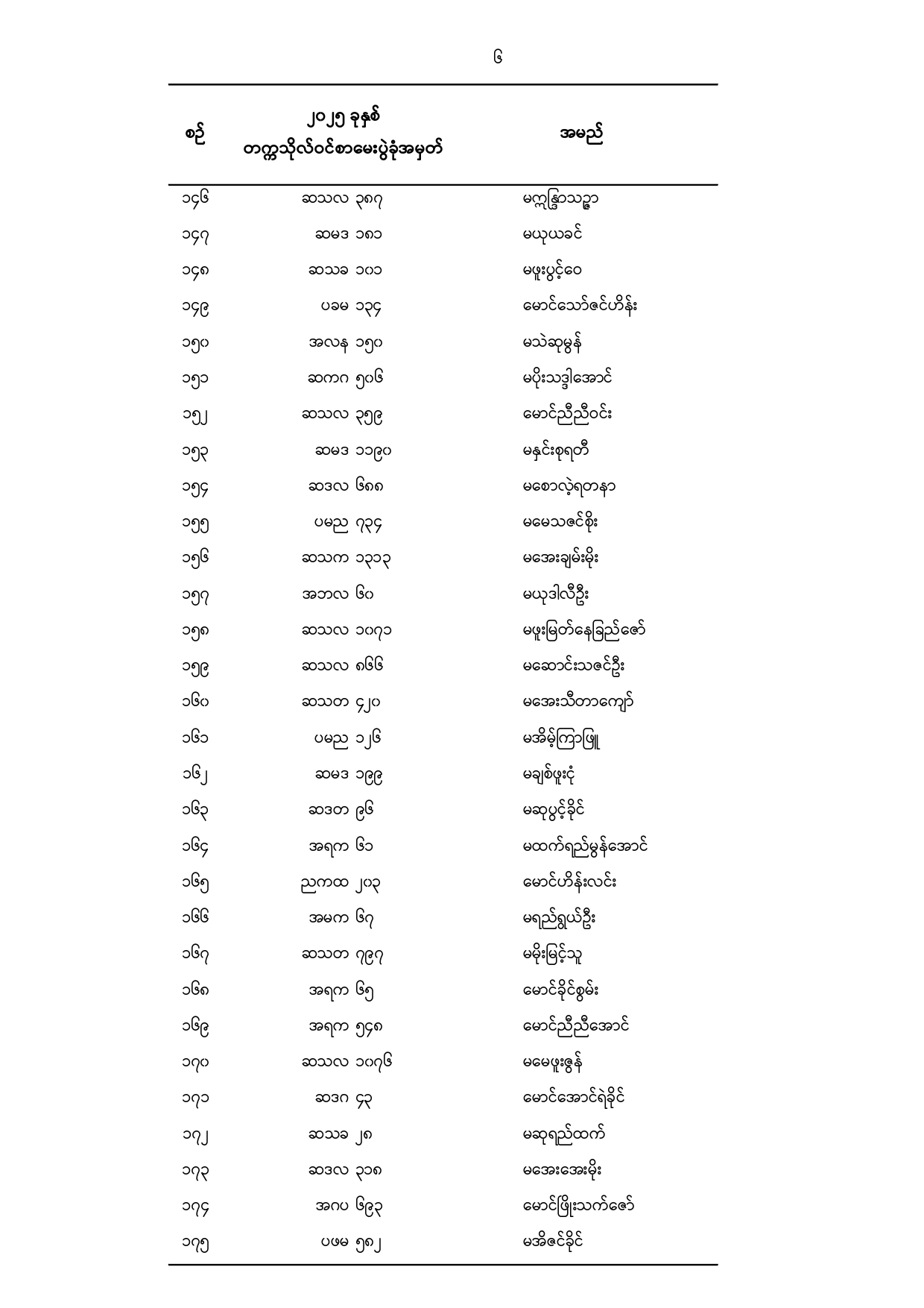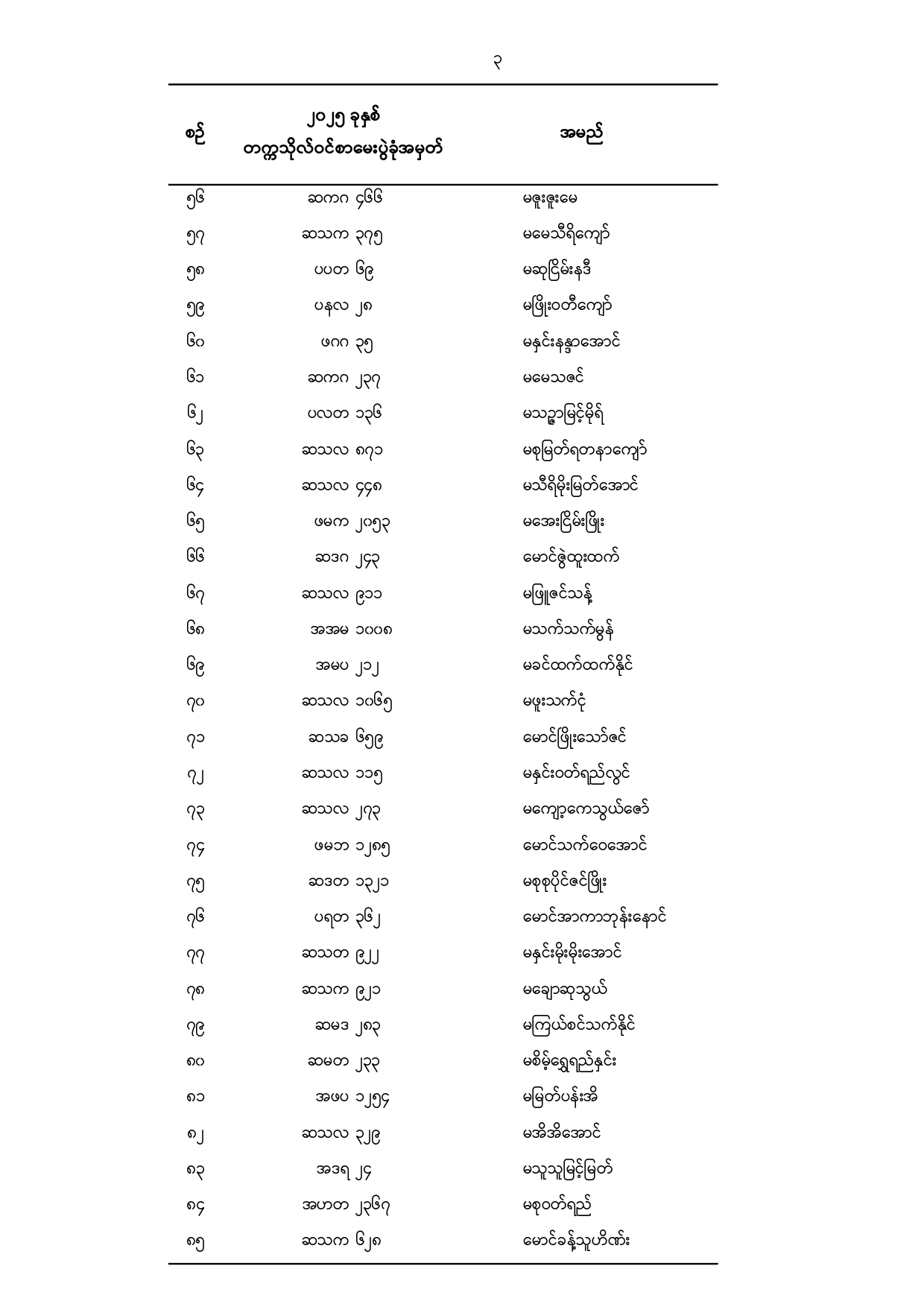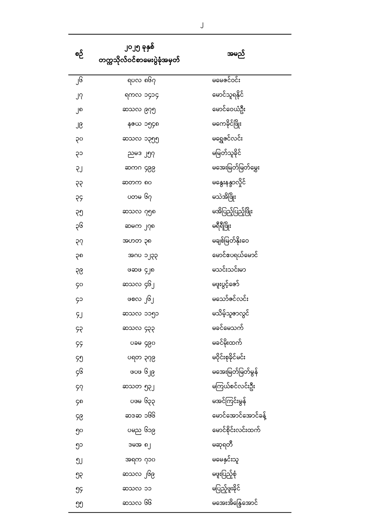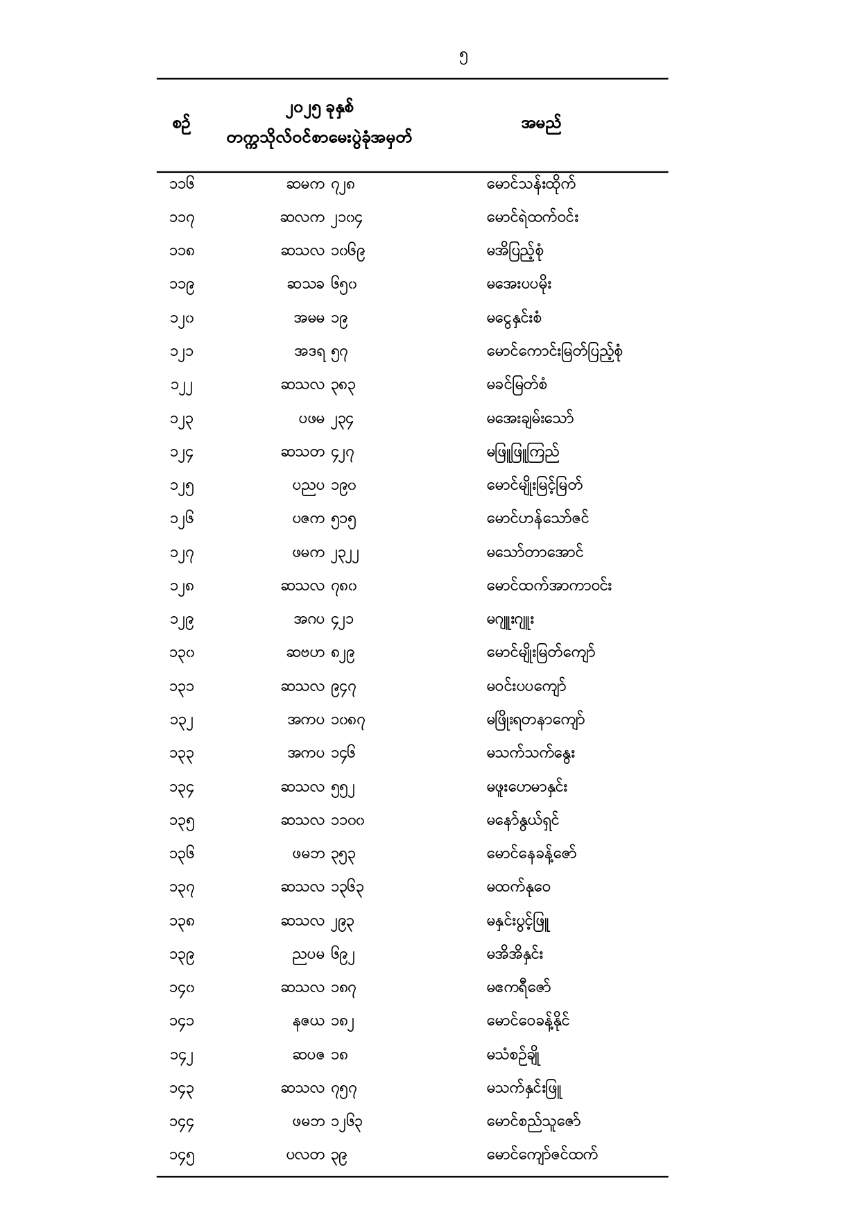 သမဝါယမနှင့်စီမံခန့်ခွဲမှုပညာတက္ကသိုလ်(သန်လျင်) ၂၀၂၅ -၂၀၂၆ ပညာသင်နှစ်၊ ပထမနှစ်ဝင်ခွင့် ရရှိသူများစာရင်း