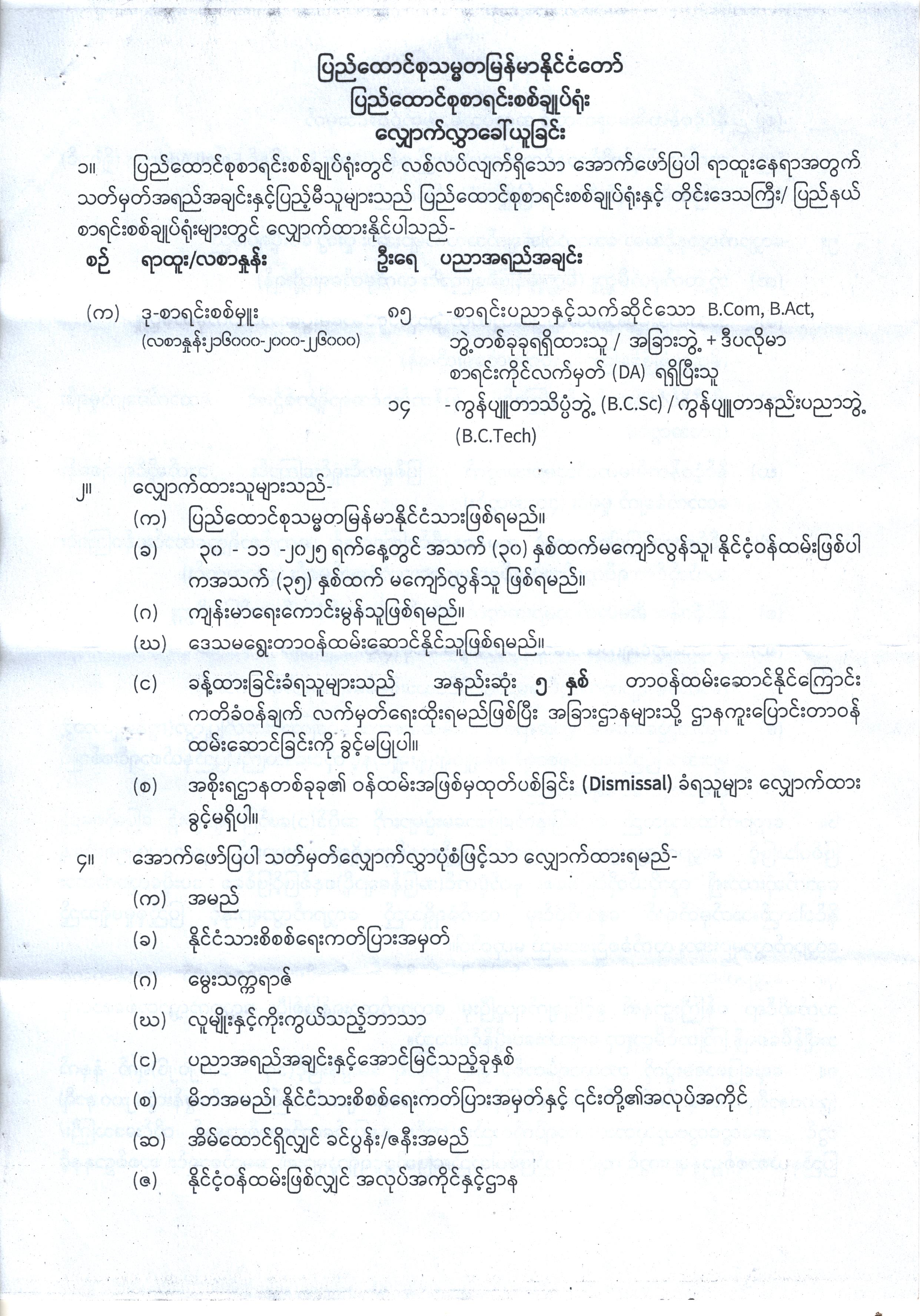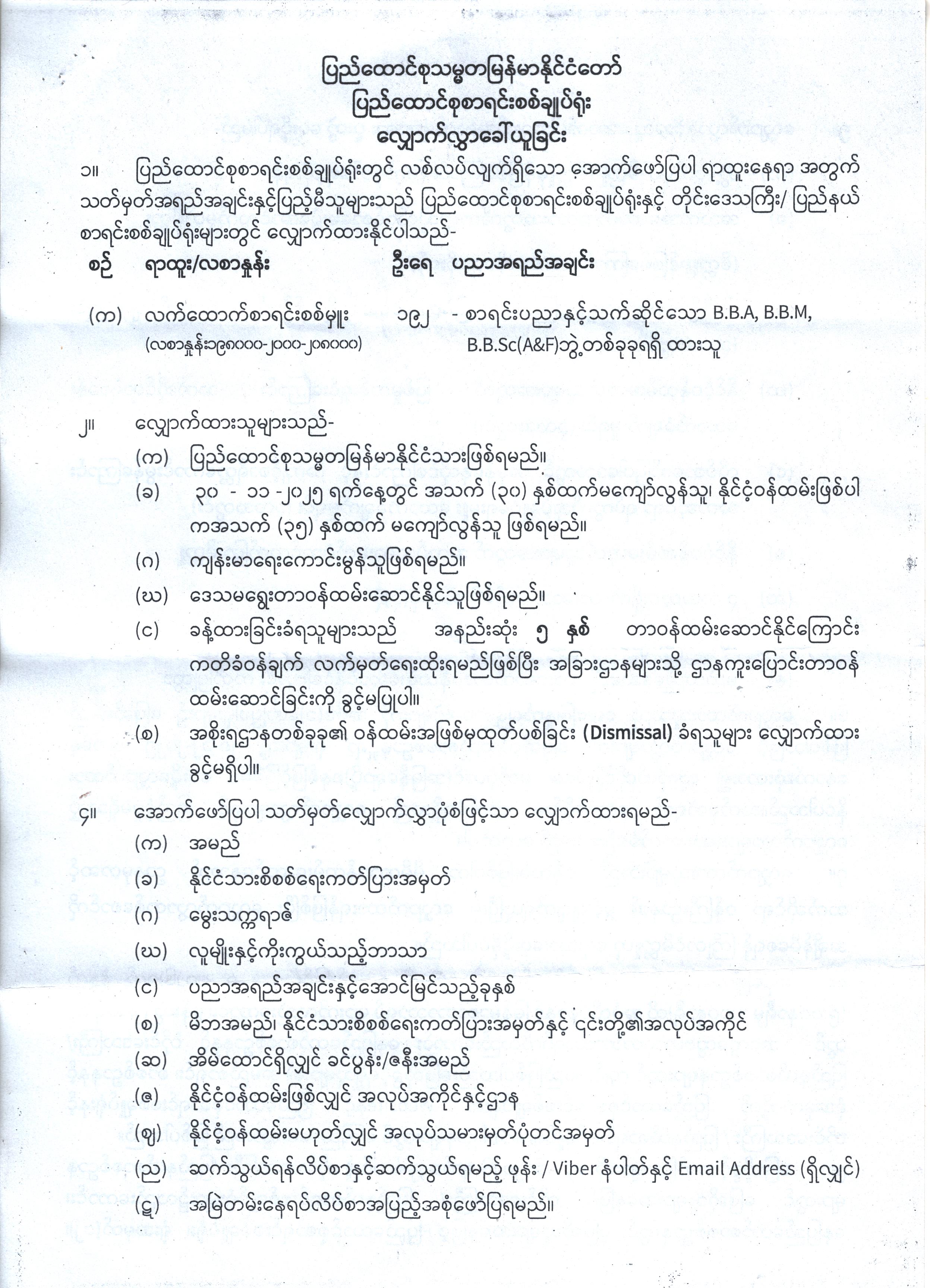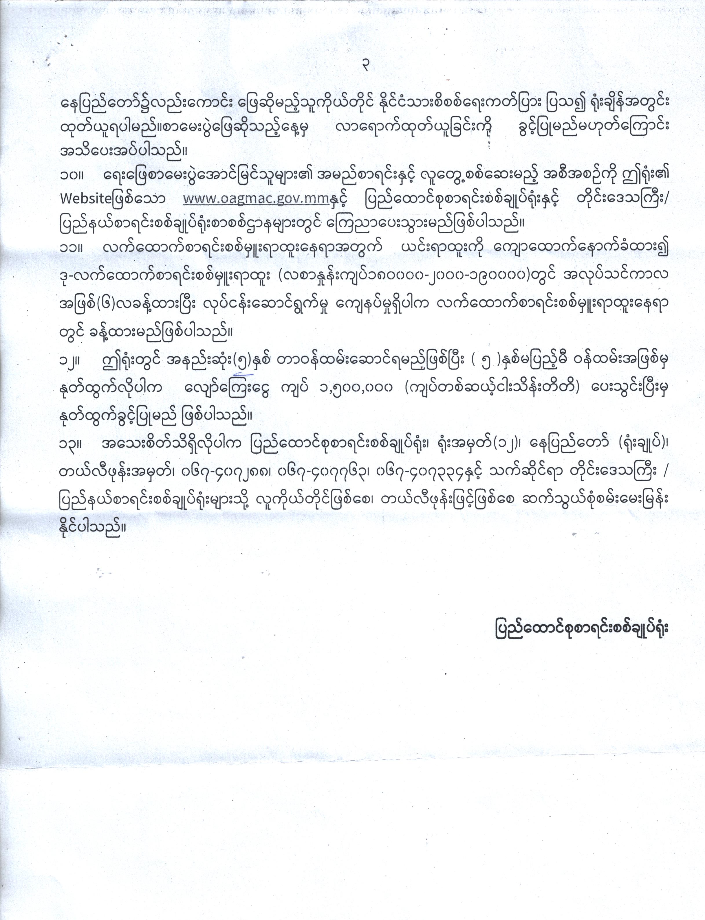 ပြည်ထောင်စုစာရင်းစစ်ချုပ်ရုံး လျှောက်လွှာခေါ်ယူခြင်း