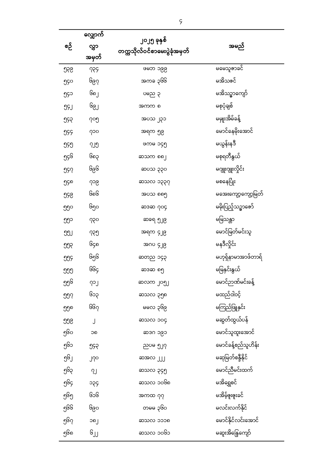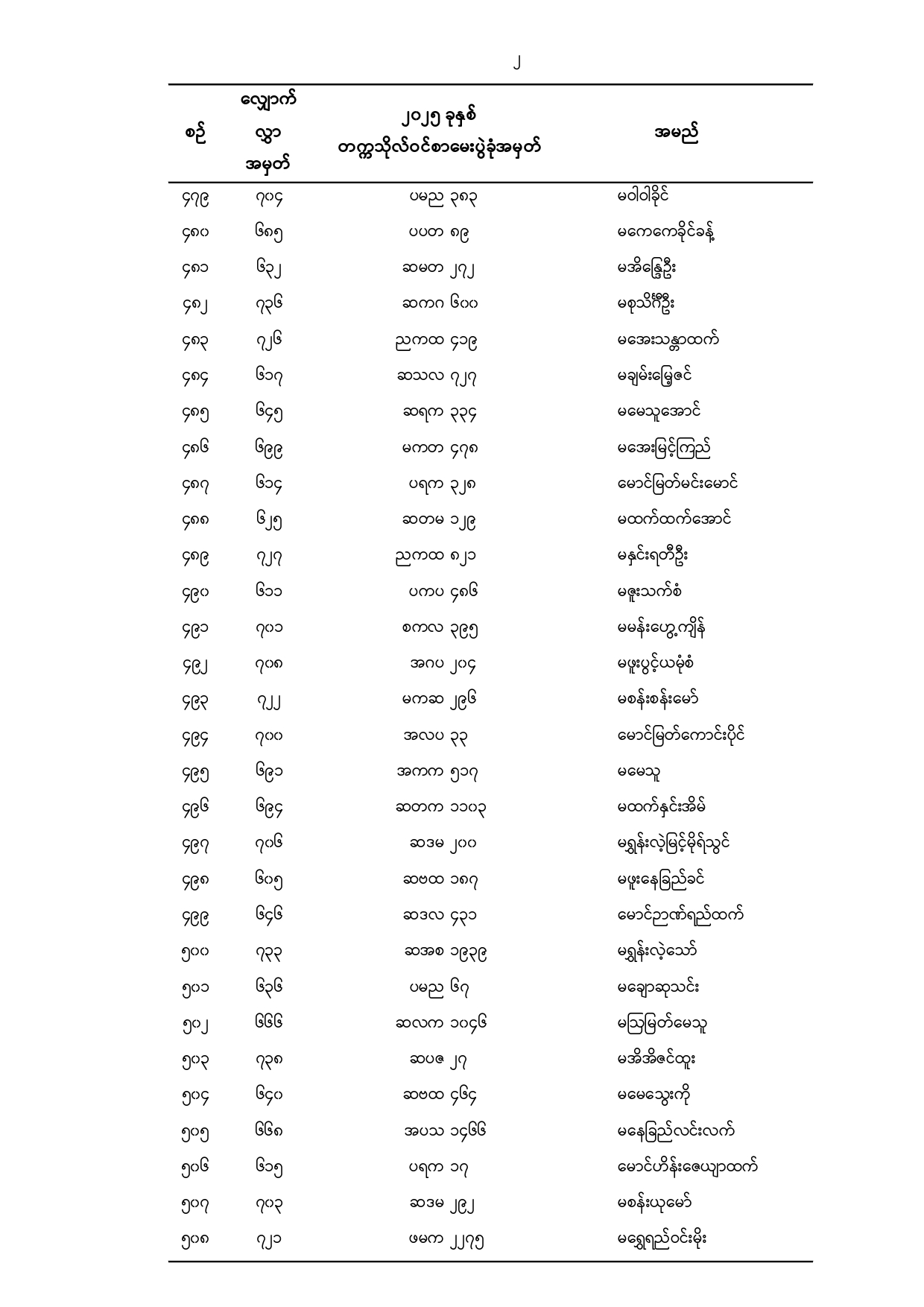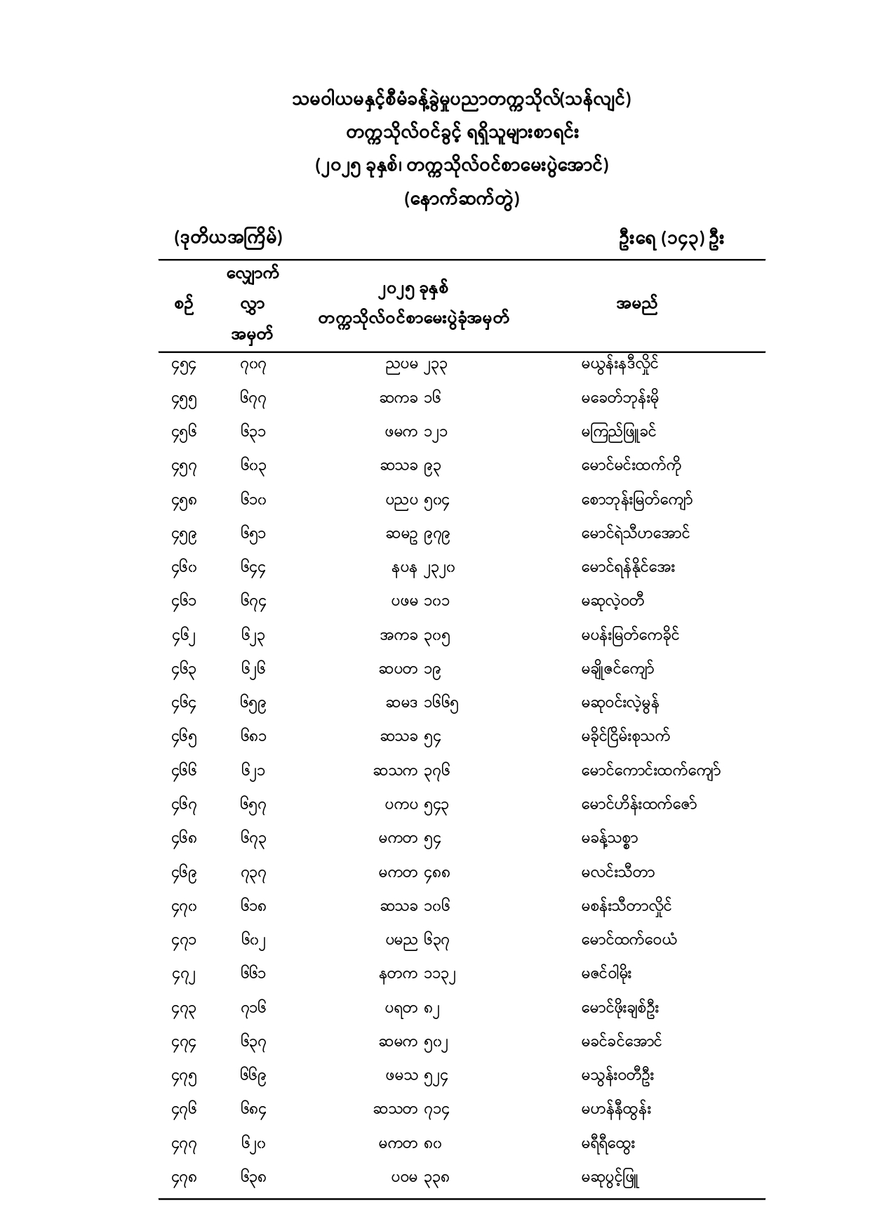 သမဝါယမနှင့်စီမံခန့်ခွဲမှုပညာတက္ကသိုလ်(သန်လျင်) ၂၀၂၅ -၂၀၂၆ ပညာသင်နှစ်၊ ပထမနှစ်ဝင်ခွင့် ရရှိသူများစာရင်း (နောက်ဆက်တွဲ)(ဒုတိယအကြိမ်)