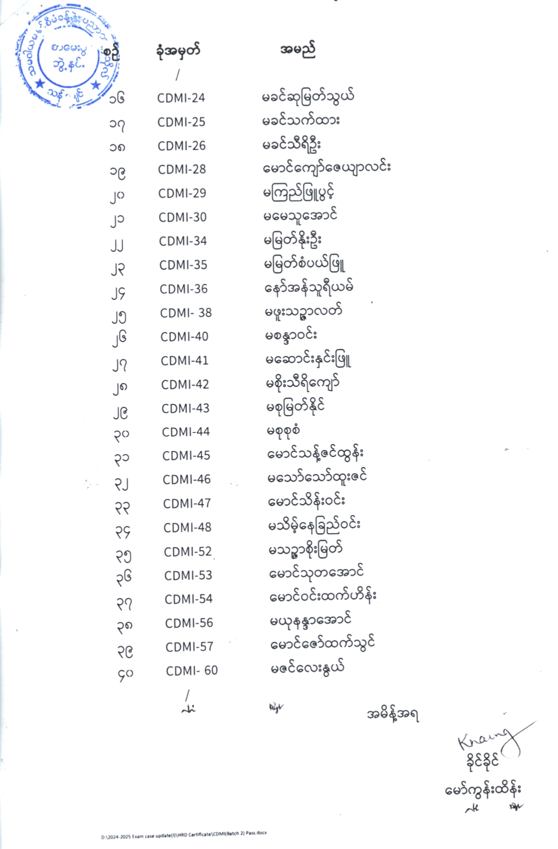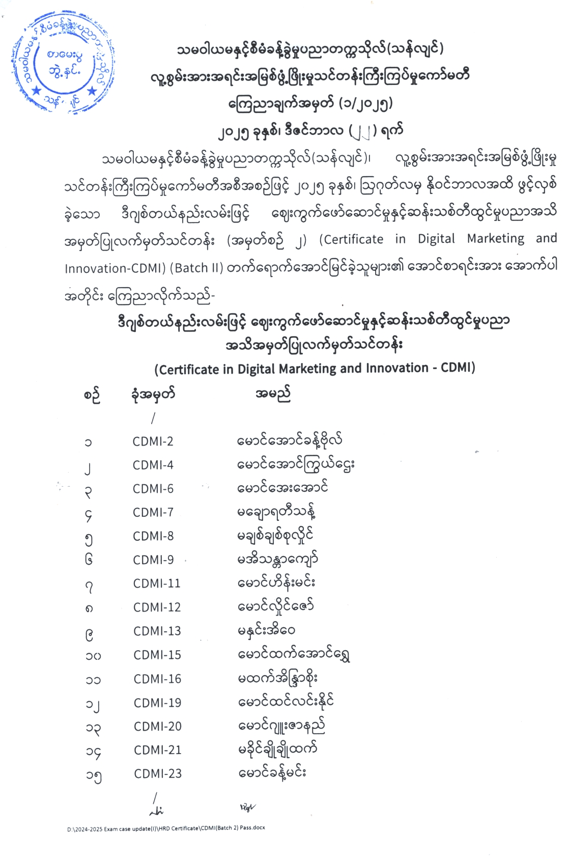 Certificate in Digital Marketing and Innovation-CDMI (Batch II) အောင်မြင်ခဲ့သူများစာရင်း ကြေညာခြင်း