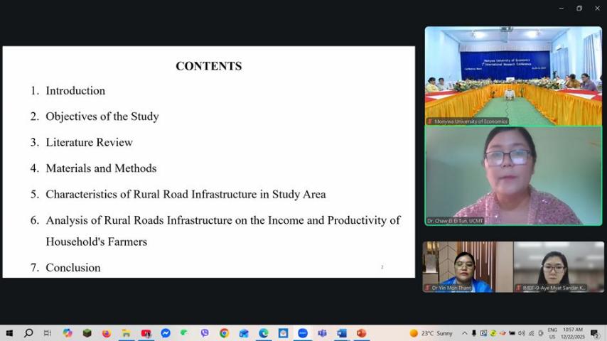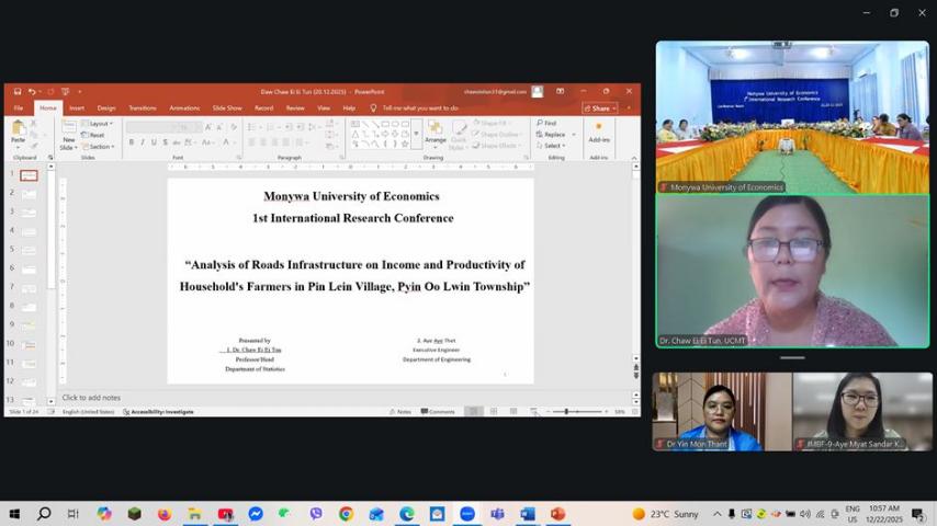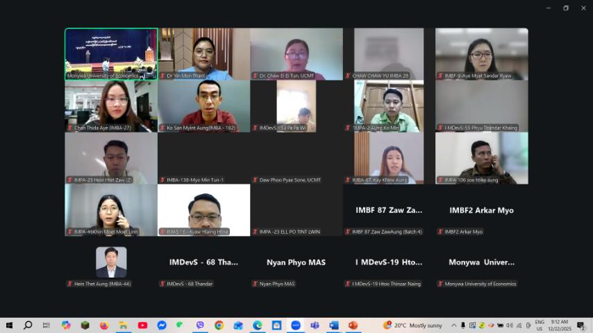 မုံရွာစီးပွားရေးတက္ကသိုလ် တွင် တက္ကသိုလ် (၂၇)နှစ်ပြည့် နှစ်ပတ်လည်နေ့ အထိမ်းအမှတ်အဖြစ် ပထမအကြိမ် နိုင်ငံတကာ သုတေသနညီလာခံကို (၂၂.၁၂.၂၀၂၅) ရက်နေ့နှင့် (၂၃.၁၂.၂၀၂၅)ရက် နေ့များတွင် နံနက် (၀၉:၀၀) နာရီမှ ညနေ (၀၅:၀၀)နာရီ အချိန်အထိ မုံရွာစီးပွားရေးတက္ကသိုလ် Conference Room, Silver Jubilee Hall တွင်ကျင်းပပြုလုပ်ရာ ပါမောက္ခချုပ် တက်ရောက်၍ အဖွင့်အမှာ စကားပြောကြားခဲ့သည်။