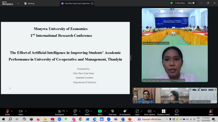 အဆိုပါအခမ်းအနားတွင် သမဝါယမနှင့်စီမံခန့်ခွဲမှုပညာတက္ကသိုလ်(သန်လျင်) ကိုယ်စားပြု သုတေသနစာတမ်းရှင်များဖြစ်ကြသည့် ဒေါက်တာချောအိအိထွန်း၊ ပါမောက္ခ၊ ဌာနမှူး၊ စာရင်းအင်းပညာဌာနမှ "Analysis of Roads Infrastructure on Income and Productivity of Household's Farmers in Pin Lein Village, Pyin Oo Lwin Township" ခေါင်းစဉ်ဖြင့်လည်းကောင်း၊ ဒေါ်ဖူးပြည့်စုံ၊ လက်ထောက်ကထိက၊ စာရင်းအင်းပညာပညာဌာန မှ "The Effect of Artificial Intelligence in Improving Students’ Academic Performance in University of Co-operative and Management, Thanlyin" ခေါင်းစဉ်ဖြင့်လည်းကောင်း သုတေသနစာတမ်းများကို အသီးသီး ဖတ်ကြားတင်သွင်းခဲ့ပါသည်။