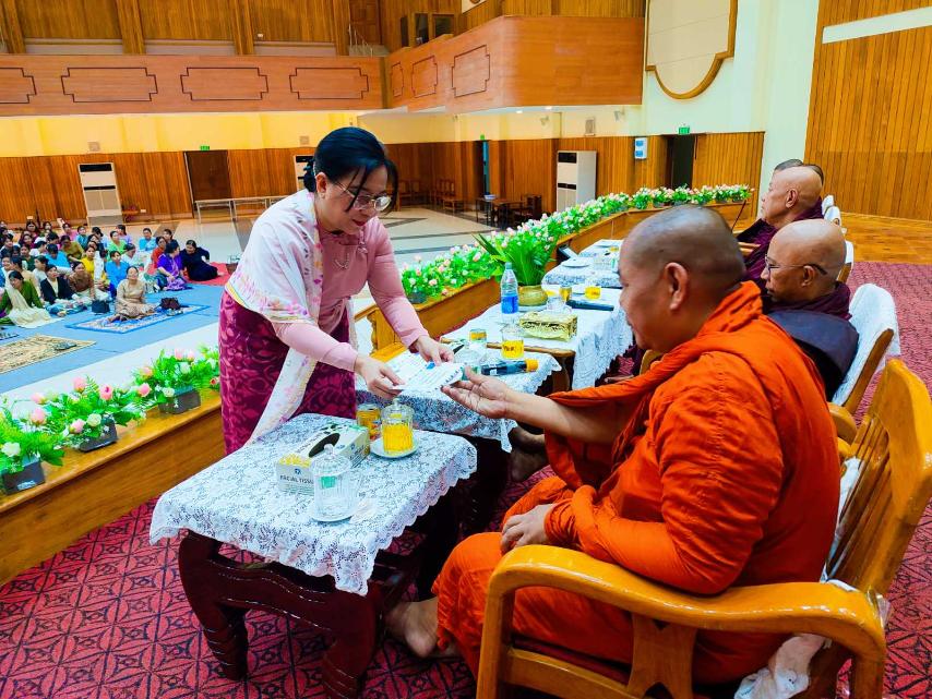 ဆက်လက်၍ ၂၀၂၆ ခုနှစ် နှစ်ဦးအလှူအခမ်းအနားကို ယနေ့ နံနက် (၆:၃၀) အချိန်တွင် ကျင်းပပြုလုပ်ရာ ဆရာတော်များထံမှ (၅)ပါးသီလ ခံယူဆောက်တည်၍ အနုမောဒနာတရားနာယူခဲ့ကြပြီး ပါမောက္ခချုပ်၊ ဒုတိယပါမောက္ခချုပ်များ၊ ဌာနမှူးများ၊ သင်ကြား၊ စီမံဌာနများမှ ဆရာ၊ ဆရာမများ၊ ဝန်ထမ်းများမှ သင်္ကန်းခြင်း၊ ဆန်၊ ဆီ၊ ဆေး၊ ဆား၊ လှူဖွယ်ပစ္စည်းများနှင့် နဝကမ္မဝတ္ထုငွေတို့အား ဆက်ကပ်လှူဒါန်းခဲ့ပါသည်။ အခမ်းအနားအပြီးတွင် ဝန်ထမ်းမိသားစုများနှင့် ကျောင်းသား၊ ကျောင်းသူများအား ရွှေတောင်ခေါက်ဆွဲဖြင့် ဧည့်ခံကျွေးမွေးခဲ့ပါသည်။ ယနေ့ကျင်းပပြုလုပ်သည့် သမဝါယမနှင့်စီမံခန့်ခွဲမှုပညာတက္ကသိုလ်(သန်လျင်)၏ ၂၀၂၆ ခုနှစ် နှစ်ဦးအလှူ စုစုပေါင်းလှူဒါန်းမှုမှာ တန်ဖိုးငွေကျပ် ၃၃၇၈၁၀၀/- ဖြစ်ပါသည်။