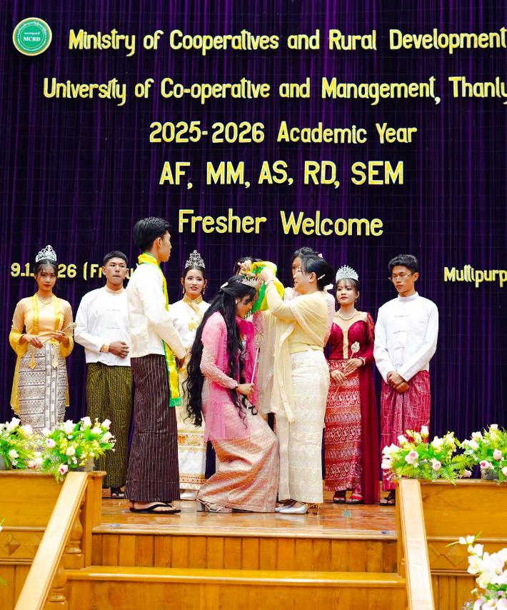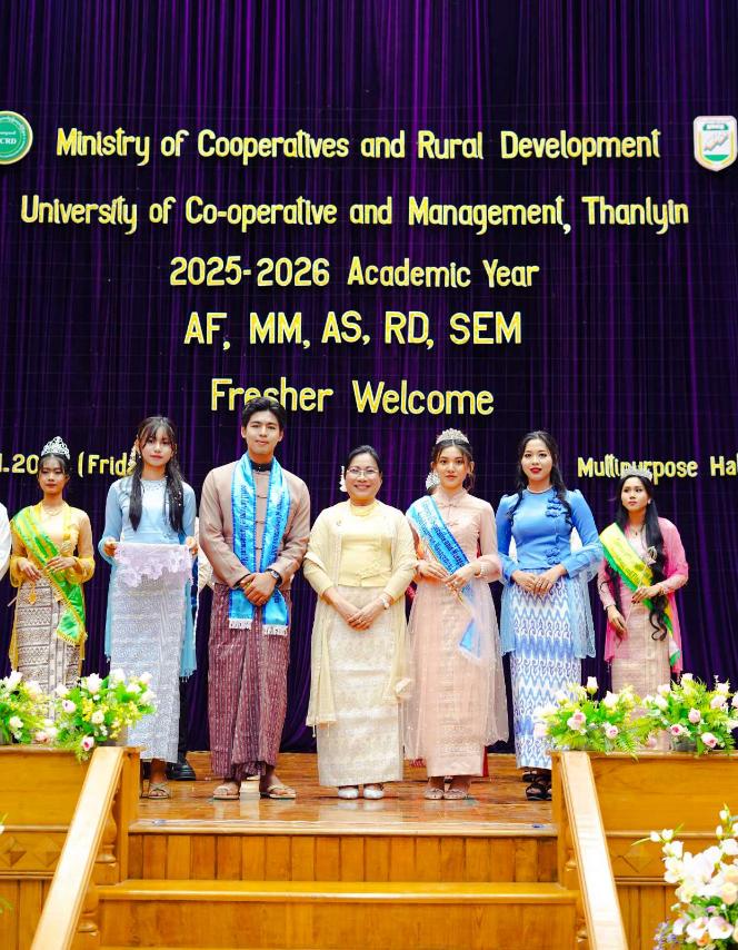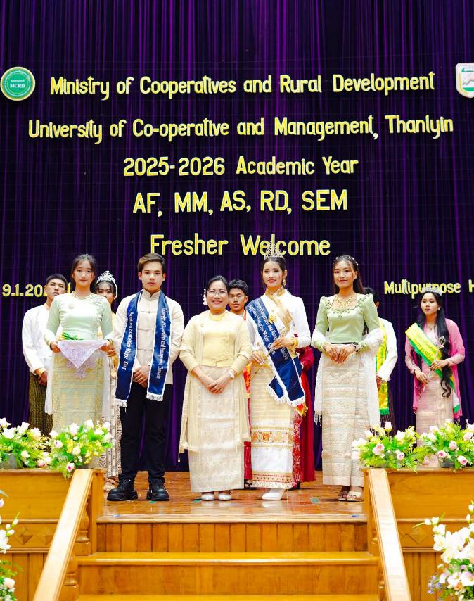 သမဝါယမနှင့်စီမံခန့်ခွဲမှုပညာတက္ကသိုလ် (သန်လျင်) တွင် ၂၀၂၅-၂၀၂၆ ပညာသင်နှစ်၊ အထူးပြု ဘာသာရပ် (၅) ခုဖြစ်သည့် စာရင်းကိုင်နှင့်ဘဏ္ဍာရေးပညာ၊ ဈေးကွက်ဖော်ဆောင်ရေး စီမံခန့်ခွဲမှုပညာ၊ အသုံးချစာရင်းအင်းပညာ၊ ဒေသဆိုင်ရာဖွံ့ဖြိုးမှုပညာနှင့် လူမှုစီးပွားရေးလုပ်ငန်းစီမံခန့်ခွဲမှုပညာတို့၏ မောင်မယ်သစ်လွင်ကြိုဆိုပွဲနှင့် ပညာရည်ချွန်ဆုပေးပွဲ အခမ်းအနားကို ၉-၁-၂၀၂၆ ရက်နေ့၊ နံနက် ၁၀ အချိန်တွင် ဘက်စုံသုံးခန်းမ၌ ကျင်းပပြုလုပ်ခဲ့ပါသည်။ အခမ်းအနားတွင် ပါမောက္ခချုပ် ဒေါက်တာရီရီဝင်းမှ ကြိုဆိုနှုတ်ခွန်းဆက်စကားပြောကြားခဲ့ပြီး သမဝါယမပညာဌာနမှ ပါမောက္ခ (ဌာနမှူး) ဒေါ်ခင်အေးမာ၊ ဘောဂဗေဒဌာနမှ ပါမောက္ခ (ဌာနမှူး) ဒေါက်တာသင်းသင်းယု၊ စာရင်းအင်းပညာဌာနမှ ပါမောက္ခ (ဌာနမှူး) ဒေါက်တာချောအိအိထွန်း၊ စီမံခန့်ခွဲမှုပညာဌာနမှ တွဲဖက်ပါမောက္ခ (ခေတ္တဌာနမှူး) ဒေါက်တာတင်နီလာဝင်း နှင့် ဝါဏိဇ္ဇဗေဒဌာနမှ ဘာသာရပ်တာဝန်ခံ၊ လက်ထောက်ကထိက ဒေါ်ခင်ဇာဝင်း တို့မှ မေဂျာအသီးသီးအတွက် ကြိုဆိုနှုတ်ခွန်းဆက်စကားများ ပြောကြားခဲ့ကြပါသည်။ ဆက်လက်၍ မောင်မယ်သစ်လွင်များအား ပါမောက္ခချုပ်၊ ဒုတိယပါမောက္ခချုပ်(သင်ကြား)၊ သင်ကြား/စီမံဌာနများမှ ဌာနမှူးများ၊ ဘာသာရပ်တာဝန်ခံများ၊ သင်ကြားရေး ဆရာ/ဆရာမများနှင့် မိတ်ဆက်ပေးခဲ့ပြီး မေဂျာအသီးသီးမှ ဝင်ခွင့်အမှတ်အများဆုံးရရှိသူများအား ဆုချီးမြှင့်ခဲ့ပါသည်။ ထို့နောက် မေဂျာအသီးသီးမှ King၊ Queen နှင့ People Choice Award ရရှိသူများအား ဆုချီးမြှင့်ခဲ့ပါသည်။