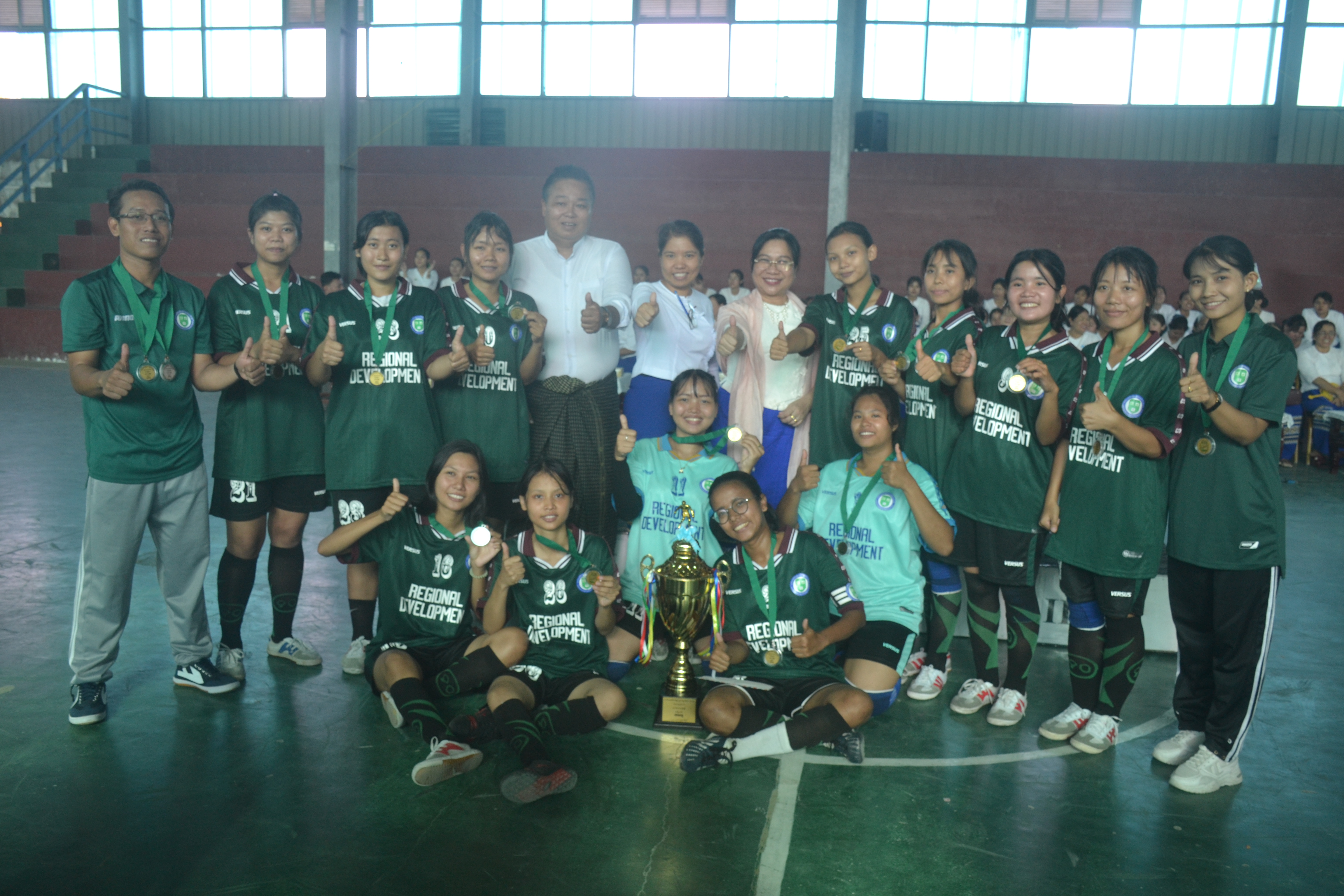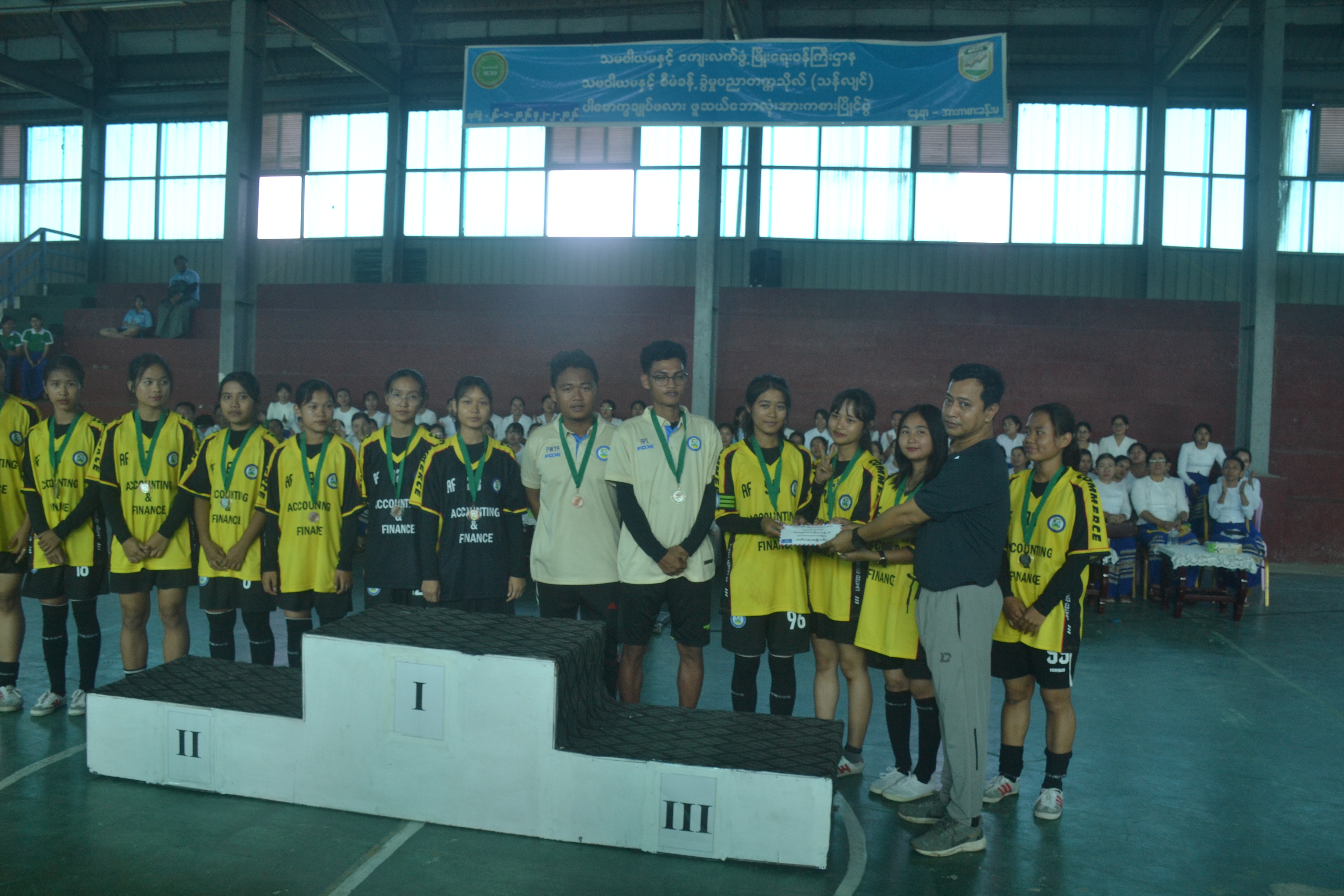 အဆိုပါ ပါမောက္ခချုပ်ဖလား ဖူဆယ်ဘောလုံးအားကစားပြိုင်ပွဲတွင် ပါမောက္ခချုပ် ဒေါက်တာရီရီဝင်းက hat-trick ဂိုးသွင်းဆုရရှိသော လူမှုစီးပွားရေးလုပ်ငန်းစီမံခန့်ခွဲမှုပညာအထူးပြုဘာသာရပ် အသင်းမှ ကျောနံပါတ်(၁၀) မောင်ထွန်းသုတအား ဂုဏ်ပြုဆုငွေနှင့် အမှတ်တရလက်ဆောင် ဘောလုံးအားလည်းကောင်း၊ ပထမဆု ရရှိသော အမျိုးသား လူမှုစီးပွားရေးလုပ်ငန်းစီမံခန့်ခွဲမှုပညာအထူးပြုဘာသာရပ် အသင်း နှင့် အမျိုးသမီး ဒေသဆိုင်ရာဖွံ့ဖြိုးမှုပညာအထူးပြုဘာသာရပ် အသင်းတို့အား ဆုဖလား၊ ဂုဏ်ပြုဆုငွေနှင့် တစ်ဦးချင်း ဆုတံဆိပ်များအား လည်းကောင်း၊ ဒုတိယဆုရရှိသော အမျိုးသား ဒေသဆိုင်ရာဖွံ့ဖြိုးမှုပညာအထူးပြုဘာသာရပ်အသင်း နှင့် အမျိုးသမီး ဈေးကွက်ဖော်ဆောင်ရေးစီမံခန့်ခွဲမှုပညာအထူးပြုဘာသာရပ်အသင်းတို့အား ဒုတိယပါမောက္ခချုပ်(သင်ကြား) မှ လည်းကောင်း၊ တတိယဆုရရှိသော အမျိုးသား စာရင်းကိုင်ပညာနှင့်ဘဏ္ဍာရေးပညာအထူးပြုဘာသာရပ်အသင်းနှင့် အမျိုးသမီး စာရင်းကိုင်ပညာနှင့်ဘဏ္ဍာရေးပညာအထူးပြုဘာသာရပ်အသင်းတို့အား အားကစားနှင့် ကာယပညာကော်မတီ ဥက္ကဋ္ဌ၊ ဦးကျော်ဖုန်းနိုင်မှ ဂုဏ်ပြုဆုငွေနှင့် တစ်ဦးချင်းဆုတံဆိပ်များ အသီးသီးပေးအပ်ချီးမြှင့်ခဲ့ကြောင်း သတင်းရရှိပါသည်။